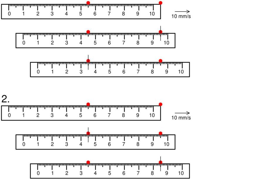 Die Einheit für den Messwert des Raumes ist m. Malen wir 2 Punkte auf eine Tafel im Abstand von 50 mm. Dann schieben wir ein Lineal z.B. mit 10 cm/s an den Punkten vorbei.